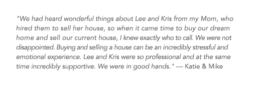 Are you considering a move? Maybe you’re a first time buyer? Working with Lee and Kris gets you two licensed real estate professionals with over 30 years of experience. Our long-term commitment to this industry gives us the expertise you need to buy and sell your home. Getting everything you want is our ultimate goal. We have the ability, knowledge and resources to find exactly what you’re looking for.